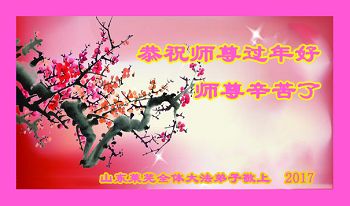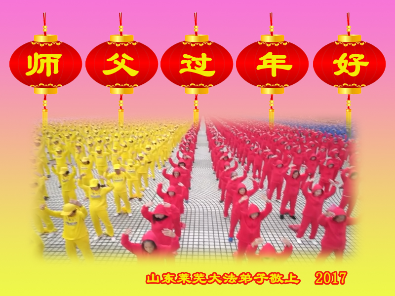 师父您好!您辛苦了!在新的一年里我们一定听师父的话,形成整体,比学比修,做好三件事。 山东莱芜全体大法弟子恭祝慈悲伟大的师父新年快乐!