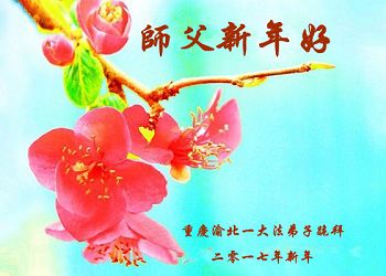 值此新年之际,重庆长寿区大法弟子叩拜慈悲伟大的师尊,祝师尊新年快乐! 师父您好!在新的一年里,弟子一定要学好法,做好师尊要求的三件事。 重庆市渝北区一大法弟子恭祝师父新年好!