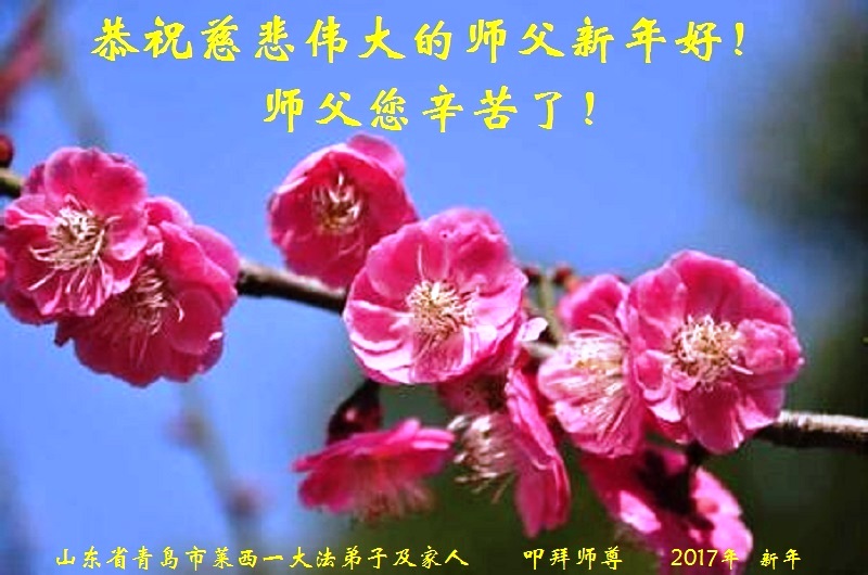 辞旧迎新的又一年,弟子无法报答师尊的救度之恩,修好自己,做好三件事,救度更多的众生,师尊您辛苦了,在此跪拜师尊新年快乐! 魏县漳南大法弟子及家人十二口恭祝师尊新年快乐! 山东省青岛市莱西一大法弟子及家人叩拜师尊,恭祝师父过年好!