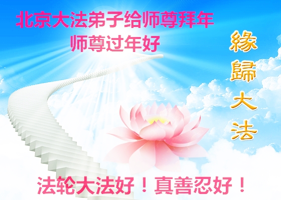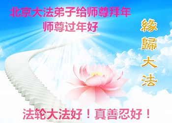 师父过年好! 弟子得法整整二十年了,师父看护了我二十年,为我操碎了心,而我却常常不精進,师父从来没有扔下不争气的弟子,真是愧对师父。师父,我在新的一年里,会努力实修,去掉执着的人心,做好三件事,让师父少为我操心。 叩拜师尊 北京大法弟子给师父拜年!