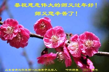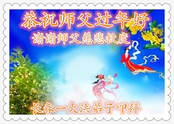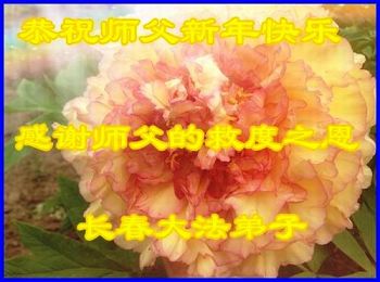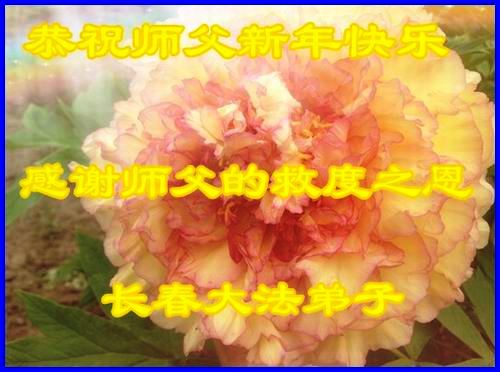 法轮大法好!真善忍好!恭祝师尊过年好! 修炼法轮大法年十八年来,感恩慈悲伟大师尊的慈悲看护和加持着我们这对夫妻同修,因为我们是属于不精進弟子,在最后有限时间里一定多学法学好法,发好正念,多救人,让家里小花开的更鲜艳,让师尊少点操心,多一点欣慰。 再次叩拜师尊新年快乐! 吉林省松原市前郭县大法弟子恭祝师尊新年快乐!
