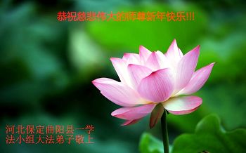师父过年好! 弟子得法整整二十年了,师父看护了我二十年,为我操碎了心,而我却常常不精進,师父从来没有扔下不争气的弟子,真是愧对师父。师父,我在新的一年里,会努力实修,去掉执着的人心,做好三件事,让师父少为我操心。 叩拜师尊 河北保定市曲阳县一学法小组大法弟子恭祝师尊新年快乐!