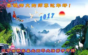 2017新的一年开始了,弟子想念师父!请师父放心,弟子一定做好三件事,提高心性,圆满随师还。 辽宁鞍山一学法小组大法弟子恭祝师父过年好!