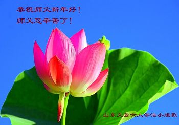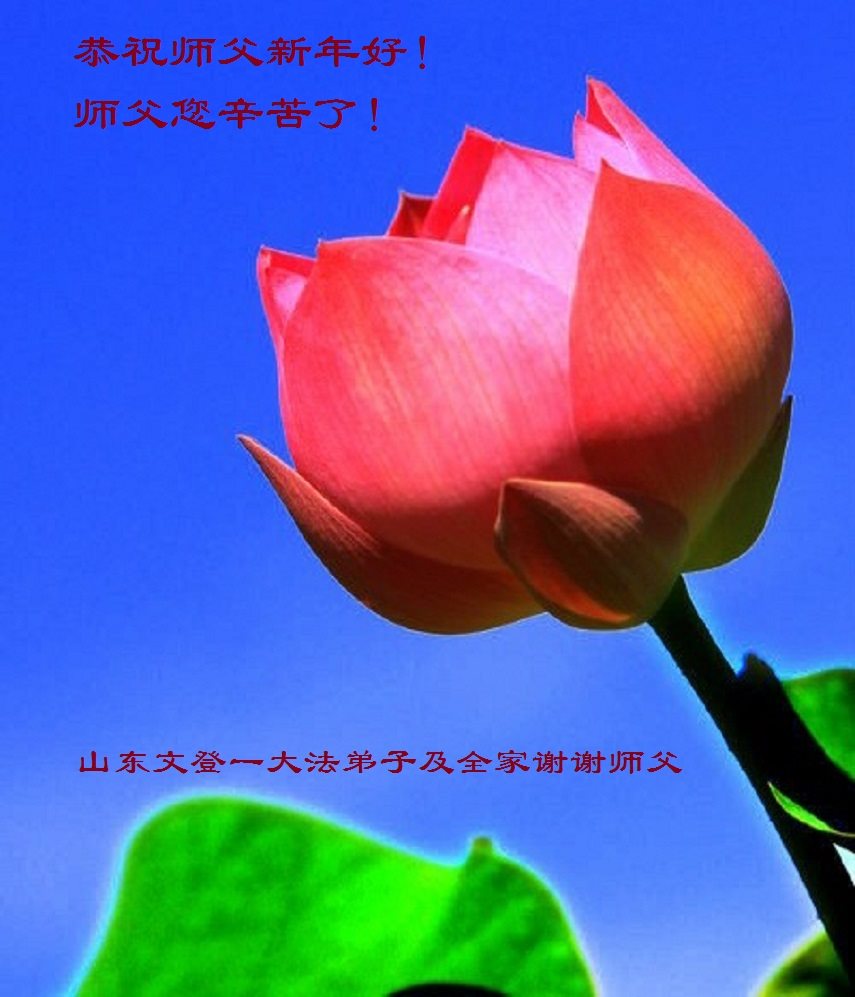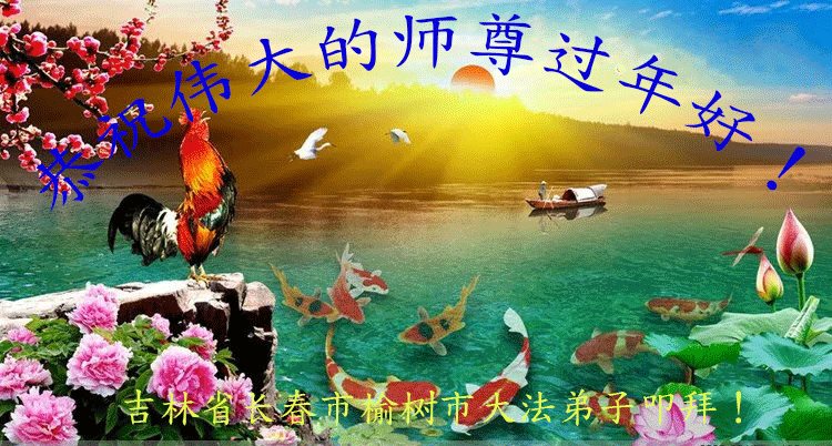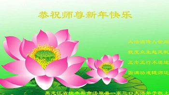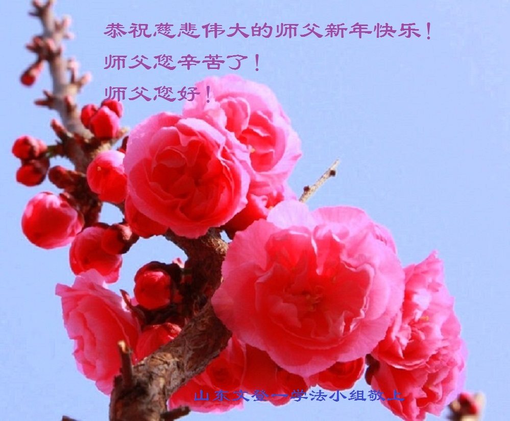 师父辛苦了!我们夫妻同修向师父问好,我们有了今天都是慈悲的师父给我们承受了那么多的苦,我们一定在新的一年里加强学法,珍惜这万古机缘,走好修炼的路,做好三件事,多救人,让世人明白真相,不要相信谎言,叫世人都能诚念“法轮大法好,真善忍好。” 我们夫妻向师父叩拜。请师父放心,天天开心。 四川德阳八角井镇大法弟子恭祝师父新年快乐!