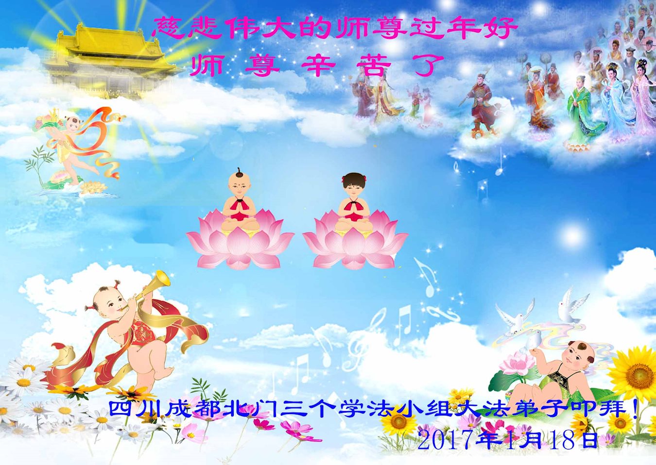 四川成都北门三个学法小组大法弟子恭祝慈悲伟大的师尊过年好!