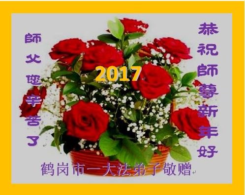 在新年来临之际,恭祝师尊新年快乐! 在新的一年里多学法,做好三件事,多救人,兑现誓约,跟着师尊返家园。 黑龙江省黑河市一老年大法弟子敬上 2017年1月18日 长春大法弟子恭祝师尊过年好!师尊您辛苦了!谢谢师尊!