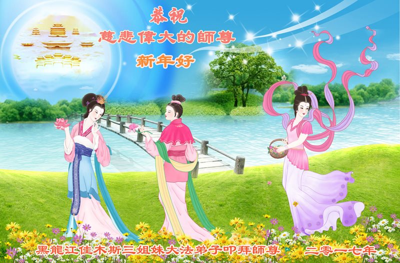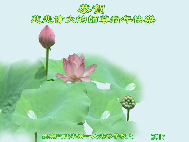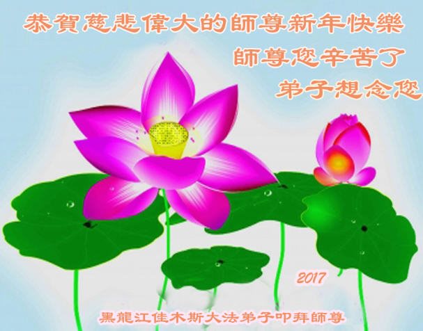 师尊啊!您为了弟子、为了众生承受了无边之难,才迎来了喜悦的新年。感恩师尊给了我无价之宝《转法轮》,引导我走上返本归真之路。我们每走一步,都与正法相连,师尊的看护。在仅有的时间里,学好法,修心性,多救人,兑现誓约,随师返家园。 黑龙江佳木斯三姐妹大法弟子恭祝慈悲伟大的师尊新年好!