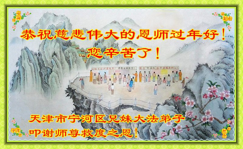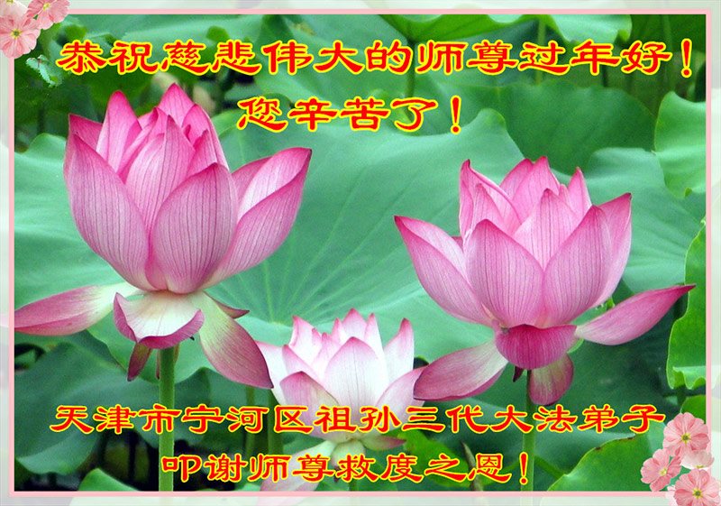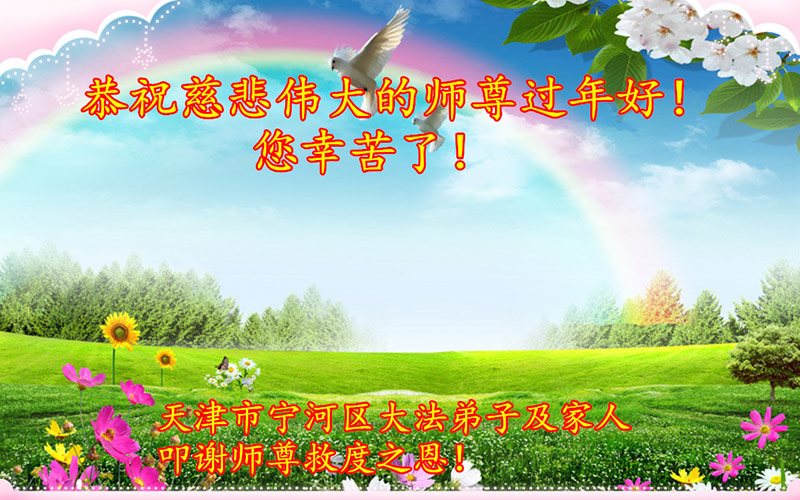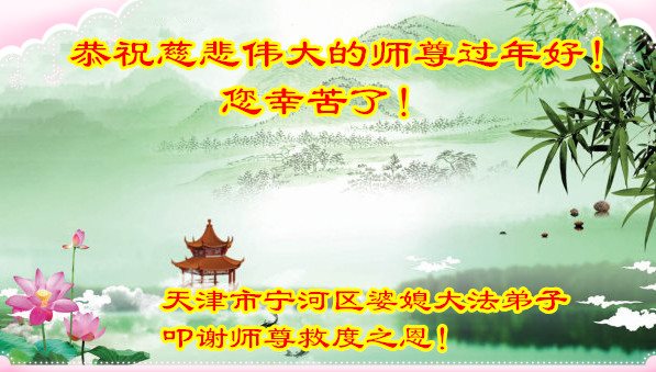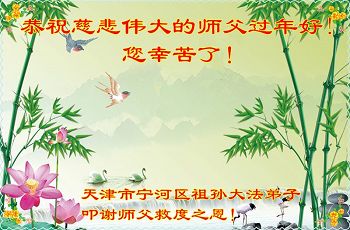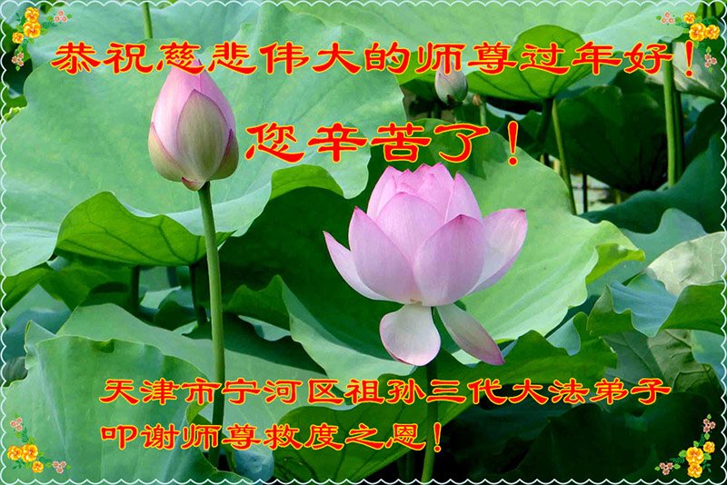 天津市宁河区三代大法弟子叩谢师尊的救度之恩!恭祝师尊过年好!