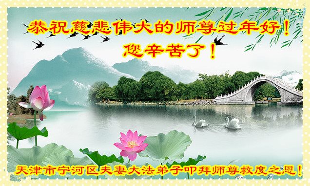 天津市宁河区夫妻大法弟子叩谢师尊救度之恩!恭祝师尊过年好!