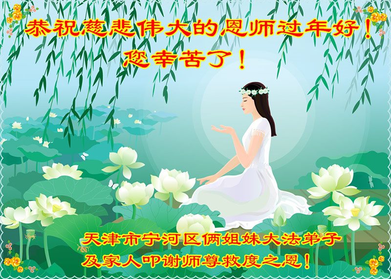 天津市宁河区姐妹大法弟子叩谢师尊的救度之恩!恭祝师尊过年好!