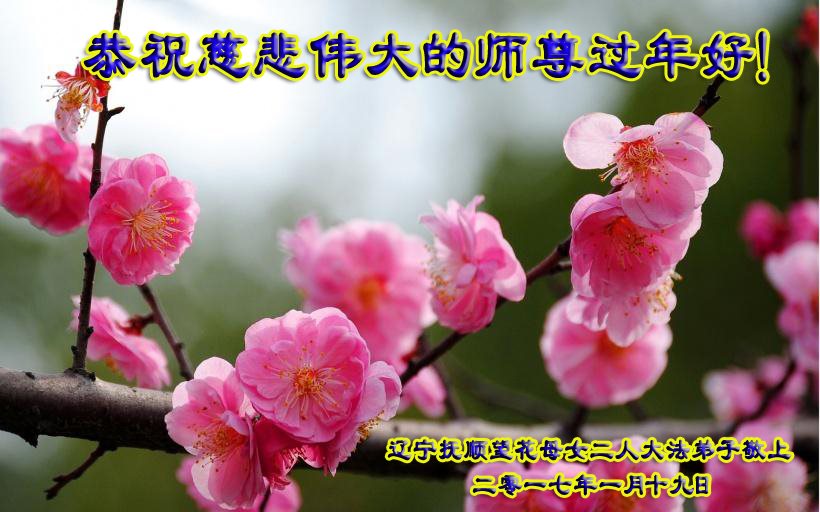 【明慧网二零一七年一月二十五日】 辽宁抚顺望花母女二人大法弟子恭祝师尊过年好!