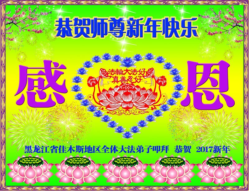 黑龙江省佳木斯地区全体大法弟子恭祝师尊新年快乐!
