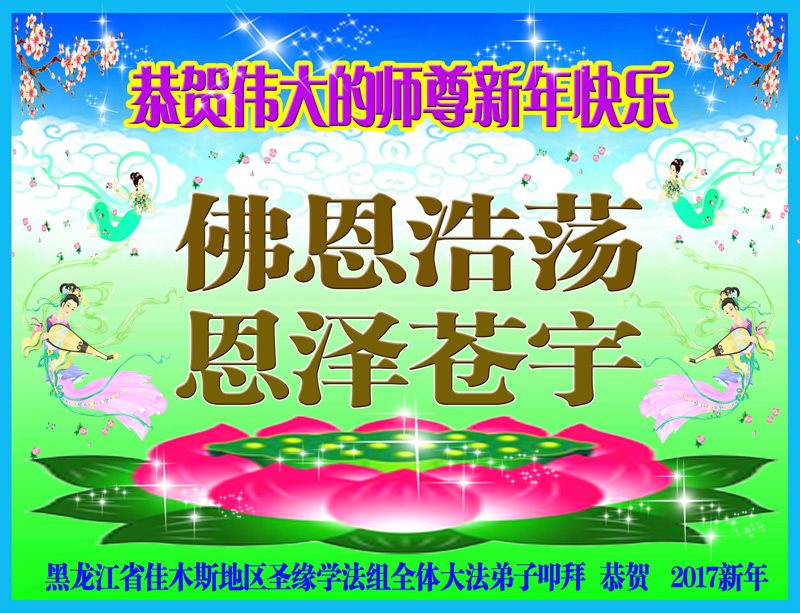 黑龙江省佳木斯地区圣缘学法小组大法弟子恭祝师尊新年快乐!