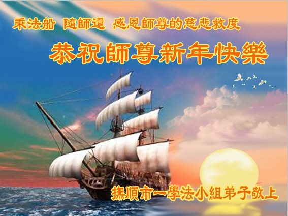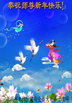 在二零一六年新年到来之际,感谢师尊的慈悲苦度!弟子们知道师尊的艰辛付出、艰辛承受、慈悲穹宇众生。弟子们只有继续做好三件事,抓紧讲清真相多救世人来回报师尊的浩荡师恩。千言万语只能汇聚成一句话:感恩师尊无量慈悲!感恩师尊慈悲救度!感恩师尊佛恩浩荡!更要勇猛精進,珍惜这万古机缘,完成助师正法、救度众生的正法时期大法弟子的使命,圆满随师还!全体弟子叩拜! 辽宁省抚顺市新抚区道街全体大法弟子恭祝师尊新年快乐!