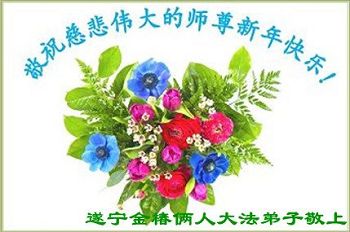四川遂宁市金椿一大法弟子向慈悲伟大的师父新年问好!