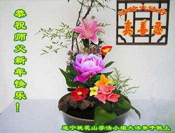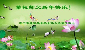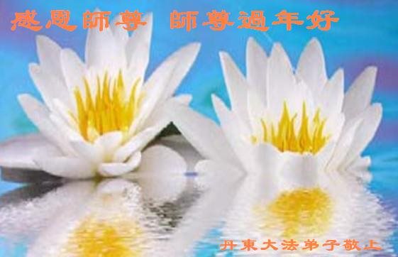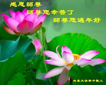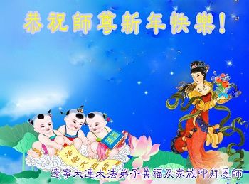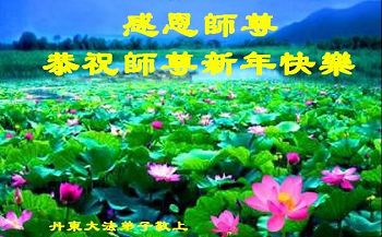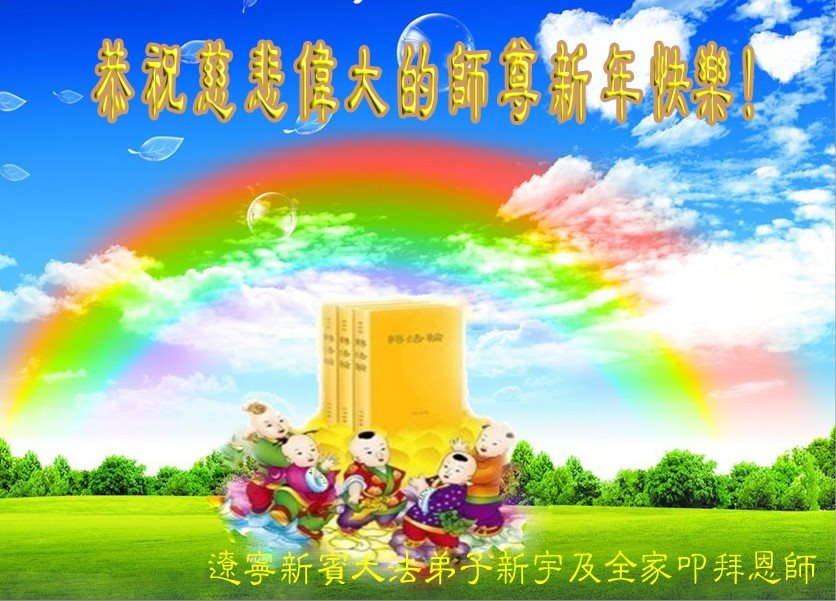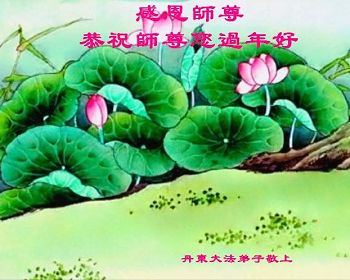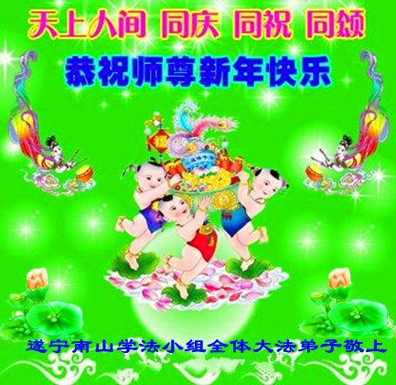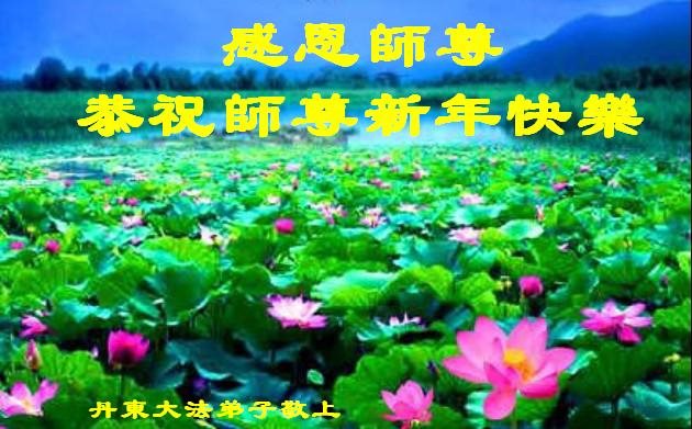 在此传统中国年来临之际,在此送上对师尊的谢意。感激师父的慈悲普度! 传统中国年,给师尊拜年!师尊普度苍生,五洲同庆贺,四海添祥瑞。 辽宁丹东大法弟子恭祝师尊新年快乐!