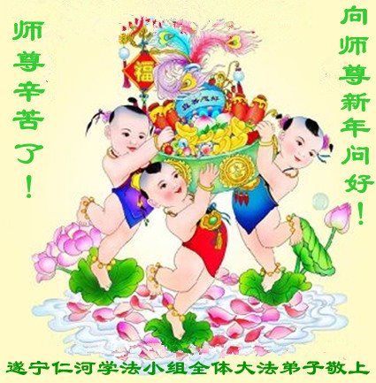 四川遂宁市仁河学法小组全体大法弟子向慈悲伟大的师父新年问好!