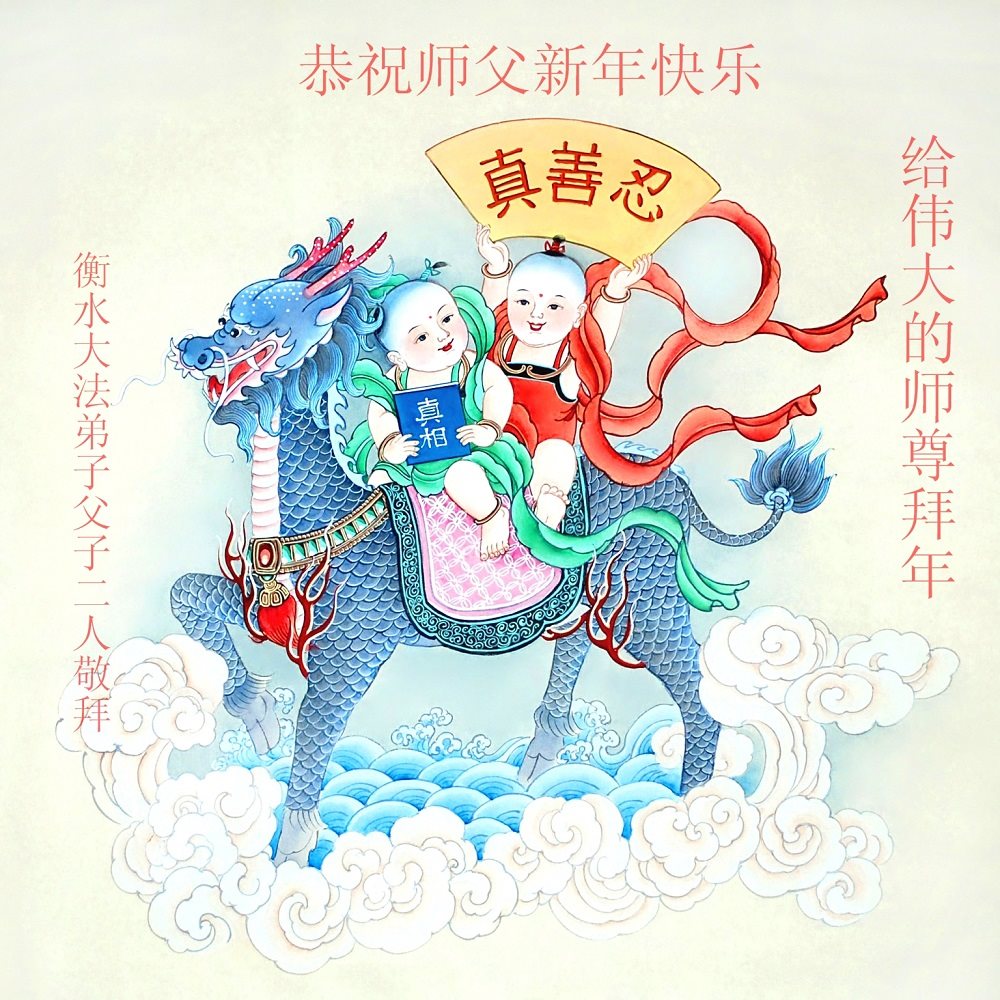 河北衡水大法弟子父子给伟大的师尊拜年!恭祝师父新年快乐!