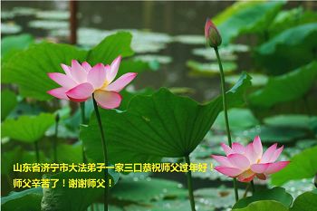 山东省济宁市大法弟子一家三口恭祝师父过年好!
