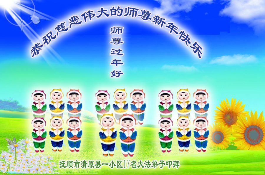 辽宁省抚顺市清原县一小区17名大法弟子恭祝师尊新年快乐!