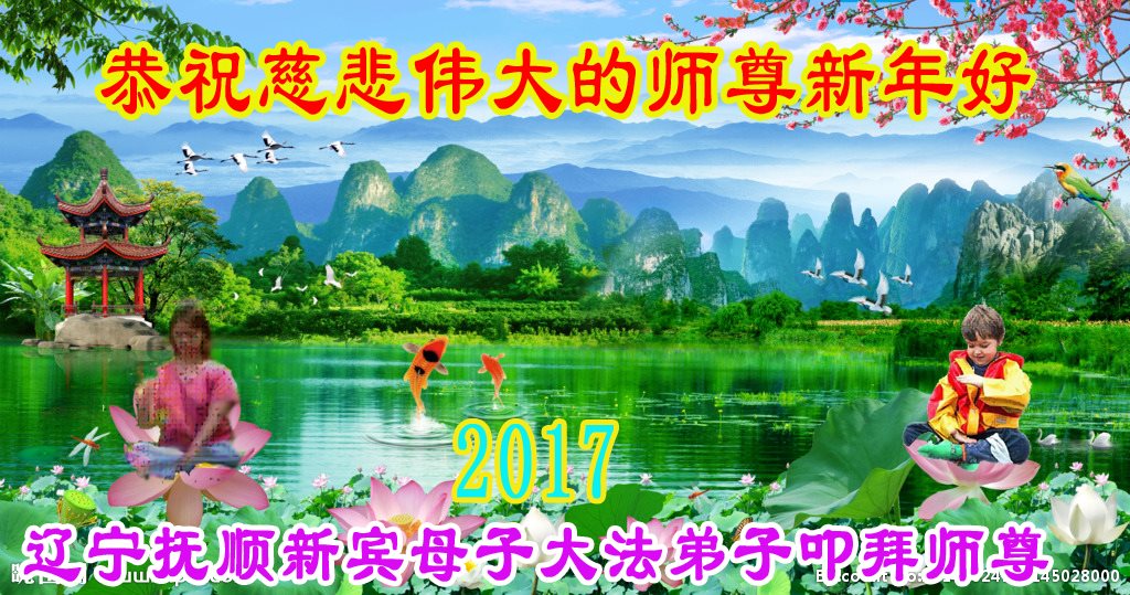 师尊:过年好! 过大年,大法弟子叩拜师尊。师尊过年好!佛恩浩荡,普天同庆,万象更新,师尊对大法弟子的慈悲普度,师尊您辛苦了! 在师尊的慈悲看护下,大法弟子应更加精進,用法来归正自己,圆容配合,整体提高,以纯净慈悲的心态,理智;智能的采用各种方式助师正法普度众生。兑现下世的誓约! 丹东大法弟子 天津和平区一学法组大法弟子给师父拜年!