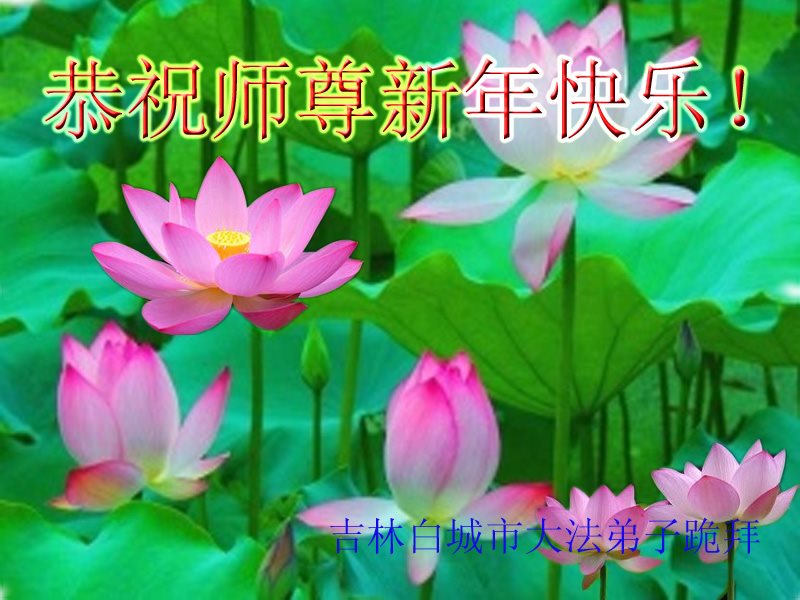师尊您好 新年快乐! 我们都是病魔缠身,生不如死,有的已经生命垂危,是师尊慈悲于我们,把这高德大法传于我们,救了我们! 师尊新年快乐! 在接下来的新时间里,弟子们一定要做到修炼如初,做好三件事,遇事向内找,时时记住自己是个大法弟子,不辜负师父慈悲苦度之恩。 敬上一首诗 世人都说:大法好! 声声爆竹贺新年 法徒叩拜敬师尊 感恩师尊来苦度 重获新生身心健 高德大法传万户 神奇事儿桩桩有: 文盲老人能识字 失明之人能复明 瘫痪人士能起身; 绝症不治不翼而飞; 天生傻儿能智慧, 哑女开口能说话! 世人都说:“大法好!给人类再造辉煌!” 保定定兴全体大法弟子敬上 吉林白城市大法弟子全家恭祝师尊新年快乐!
