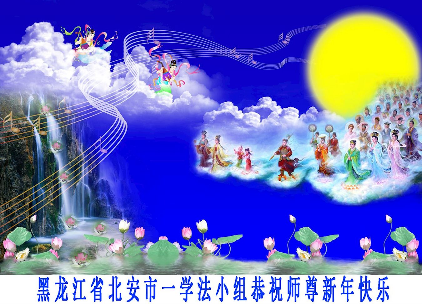感恩师尊的慈悲救度,弟子们一定会在新的一年里珍惜师尊给我们延长来的宝贵时间,用心学好法,修正一思一念,尽心尽力的抓紧时间救人,发好正念,走好最后的路,圆满随师父回家。 佳木斯一学法小组 河北曹妃甸区一大法弟子恭祝慈悲伟大的师尊过年好!
