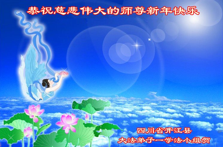 四川省达州市开江县大法弟子一学法小组恭祝慈悲伟大的师尊新年快乐!