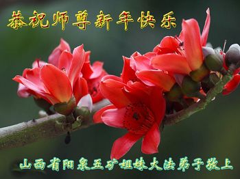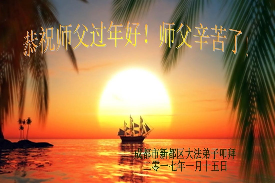 慈悲伟大师尊您好!首先恭祝慈悲伟大师尊新年好! 每逢佳节倍思亲,在新年到了之际,我们更加想念师父!从我得法走到今天,师父给了我及家人无比的呵护和浩荡洪恩,我们铭记在心,衷心感谢师父!再次祝师尊新年快乐! 四川省巴中市一大法弟子携全家人敬献 二零一七年元月十五日 山西省阳泉五矿一姐妹大法弟子恭祝师尊新年好!