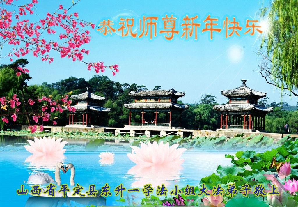 师尊:您辛苦了!正法修炼和救人的时间越来越少,弟子唯有遵照师父的要求学好法,做好三件事,救度更多的众生,才能不辜负师尊的慈悲苦度。才能跟师父回家。 值此新年到来之际,我们恭祝慈悲伟大的师父过年好! 北京石景山区大法弟子 山西省阳泉市平定县东升一学法小组大法弟子恭祝师尊新年好!