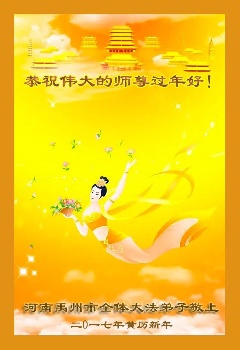师父过年好!师父,您辛苦了!我们全家谢谢师父的呵护与救度。 石家庄建明小区大法弟子跪拜 2017年1月15日 吉林省辽源市大法弟子恭祝慈悲伟大师尊过年好!恭祝伟大师父新年快乐!