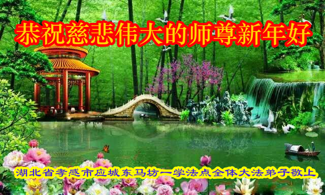 湖北省孝感市应城东马坊一学法点全体大法弟子恭祝慈悲伟大的师尊新年好!