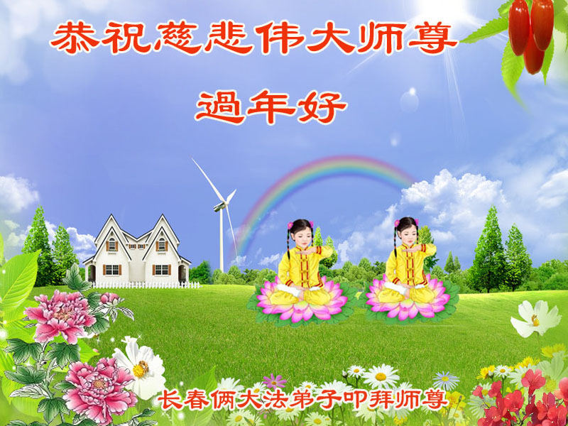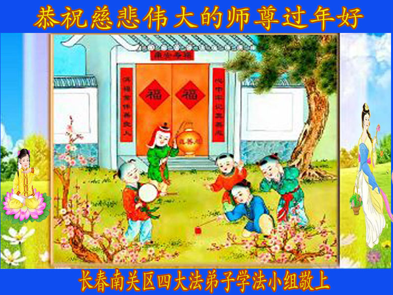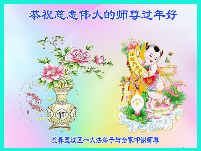 恭祝慈悲伟大的师尊过年好! 全家人恭祝师尊笑!燃香叩拜师尊救度之恩!师尊辛苦了!祝师尊快乐! 长春宽城区一大法弟子与全家叩谢师尊! 吉林省长春市南关区四大法弟子学法小组恭祝慈悲伟大的师尊过年好!
