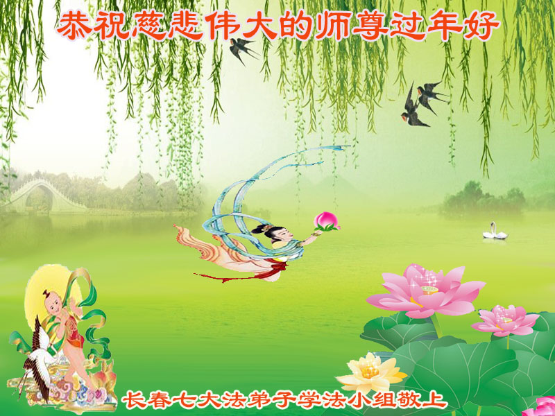 恭祝慈悲伟大的师尊过年好!师尊辛苦了! 弟子听师尊的话,正念正行做好三件事,珍惜时间多救人,弟子祝愿师尊笑! 吉林省长春七大法弟子学法小组恭祝慈悲伟大的师尊过年好!