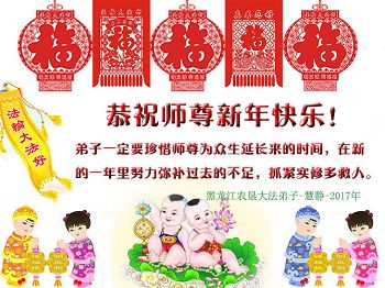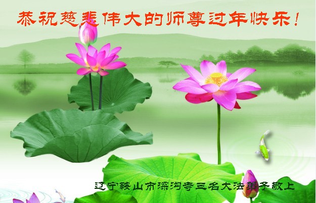 弟子听师尊的话,不管刮风下雨,严寒酷暑,天天上午出去讲真相。救度众生。 感谢伟大师尊的慈悲保护! 跪拜 合十 辽宁鞍山市深沟寺三名大法弟子恭祝慈悲伟大的师尊过年快乐!