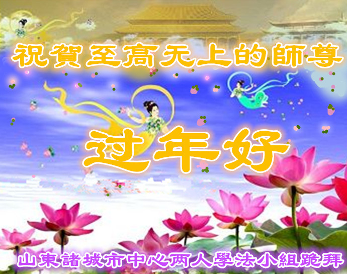 山东潍坊诸城两人学法小组大法弟子虔诚的恭祝慈悲伟大的师尊:新年快乐!