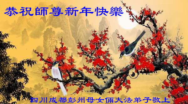 在传统的新年到来之际,弟子首先给师尊拜年!跪拜师尊!请师尊放心,弟子一定会走好最后的路! 永恒的感恩 古老的钟声迎来了传统的新年 人类在展望新的纪元 春天的音符渐渐奏响 傲雪的梅花终于战胜了严寒 漫长的风雨无数的难关 师尊保护我们直奔真正的家园 是法轮大法把我们救度 是师尊给了我们万古机缘 千百次的轮回辗转 亿万年的苦等期盼 我们今生幸逢大法传世 终将走向美丽的彼岸 无论邪恶怎样表演 我们的信仰决不改变 为助师正法救度 撑起一片片蓝天 十几年的迫害惨绝人寰 风雨中我们经历了千锤百炼 世间的迷雾 再也障不住我们的双眼 我们知道了红尘凶险 看透了名利情魇 身在浊世 心似净莲 我们矢志跟随师尊正法修炼 无悔的兑现着史前的誓愿 我们登上了师尊救度的法船 苦难中奠定着生命的永远 人世的今天是为了大法的展现 岂容迫害大法的小丑们一再作乱 正邪的较量惊心动魄 天网恢恢令邪恶胆颤 古国神州多少巾帼豪杰和英勇儿男 他们不惧生死遍传真相揭露谎言 真善忍造就的英才遍布世界 他们不辱师命把救人的重任承担 师尊正法力挽狂澜 以无量的慈悲承受着众生的巨难 再造乾坤重组大穹 使人类走出了毁灭的危险 英雄豪杰们尽显铁骨肝胆 天之骄子们雄风威震星汉 历史的巨变早已落定 神佛着下了亘古未有的壮丽诗篇 佛恩浩荡绝后空前 结上圣缘福寿绵绵 众生的感恩如海洋澎湃 多少热泪激荡着万水千山 四海同祝法正人间 普天同庆人神共欢 师尊的恩德洪灌苍宇 悲壮的正法万古留传 历史将载着永恒的感恩 让众生对大法代代颂赞 四川省成都大法弟子母女二人恭祝师父新年好!