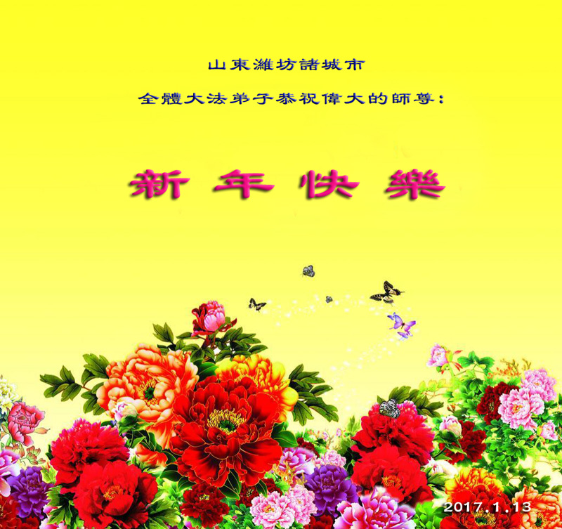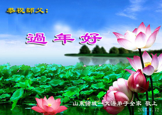 山东潍坊诸城一大法弟子全家恭祝伟大的师尊新年快乐!