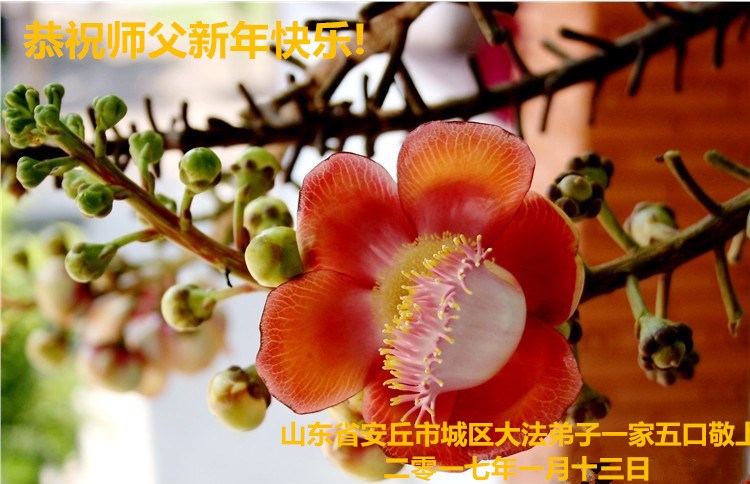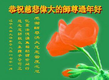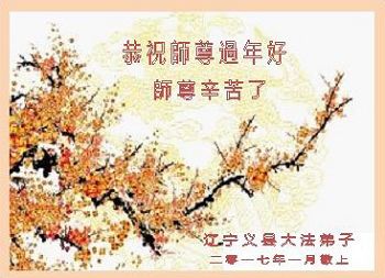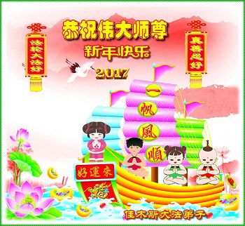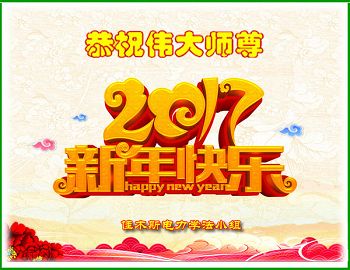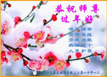 刚刚跨入二零一七年,我们又将迎来中华民族传统的新年,每逢佳节倍思亲,我们怀着对师尊无比感恩的心,向远在大洋彼岸的师尊三叩首!给师尊拜年!恭祝师尊过年好! 石家庄长安区大法弟子 二零一七年一月十四日 |