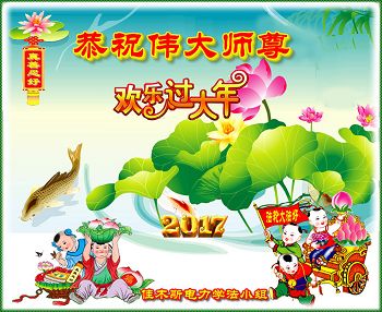 电力小组学大法, 理性认识就升华。 放下执着正念足, 救度众生有办法。 恭祝师尊新年好! 师恩浩荡很伟大。 黑龙江省佳木斯电力学法小组恭祝伟大师尊新年快乐!
