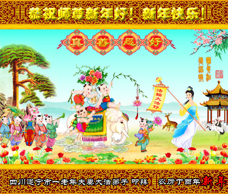 四川省遂宁市一老年夫妻大法弟子恭祝伟大慈悲的师尊新年好!新年快乐!