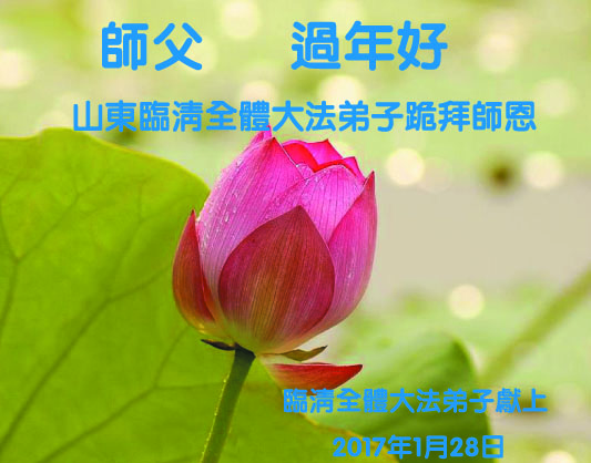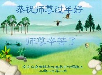 师尊!您为弟子操尽了心,您太辛苦了!请师尊放心,我们会珍惜您用巨大的承受为我们留下的宝贵时间,多学法、学好法,实修自己,去掉执着,相互配合,在助师正法最后的阶段多救人,兑现来世时的誓约,不负使命。 辽宁义县义县大法弟子敬上 二零一七年一月 黑龙江哈尔滨双城区大法弟子一家恭祝师父新年快乐!