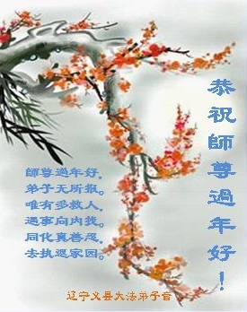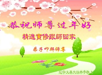 师尊好! 在这辞旧迎新的时刻,新年到来之际,“每逢佳节倍思亲”弟子们更加想念师父,愿师尊早日回到大陆和弟子们相聚。 我们唯有做好三件事,修好自己,处处用法的要求衡量自己,同化真、善、忍,跟师父回家。 叩拜师尊!合十! 辽宁省辽阳全体大法弟子给师尊拜年恭祝师尊新年好!新年快乐!