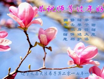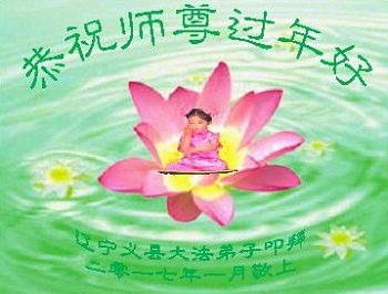 浊世净莲升九霄, 苍宇无垠莲香飘。 众莲跪拜同声颂: 恭祝师尊过年好! 北京资料点大法弟子 2017年1月14日 辽宁抚顺新宾刘家全体大法弟子恭祝师尊新年好!