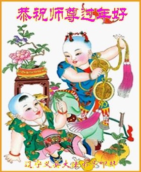 得法已十载, 女儿相继来, 邪恶挡不住, 新莲朵朵开。 值此佳节时,娘仨同叩首,叩首谢师父:千年轮回苦,终得大法度,拉着师尊手,走上归真路。 跪拜谢师父,只愿师尊年年好,宙宇从此万年新! 湖北黄冈黄梅一家两位大法弟子恭祝师尊新年快乐!