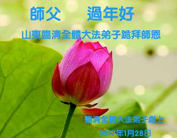 集体学法是师父给我们留下的,能够达到在纯净心态下整体学好法,整体提高心性,整体做好三件事,整体配合多救众生,整体升华的非常好的一个修炼环境。所以,我们要珍惜这个修炼环境,让它在助师正法,救度众生中,发挥更大的作用。 山东省聊城市临清市全体大法弟子恭祝师父过年好!