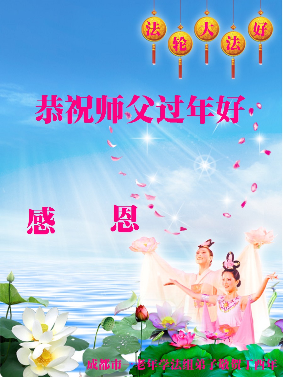 谢师恩 弟子得大法, 师尊身边护。 修去名情利, 回天谢师恩。 辽宁义县大法弟子 二零一七年一月 四川成都大法弟子恭祝慈悲伟大的师尊新年快乐!