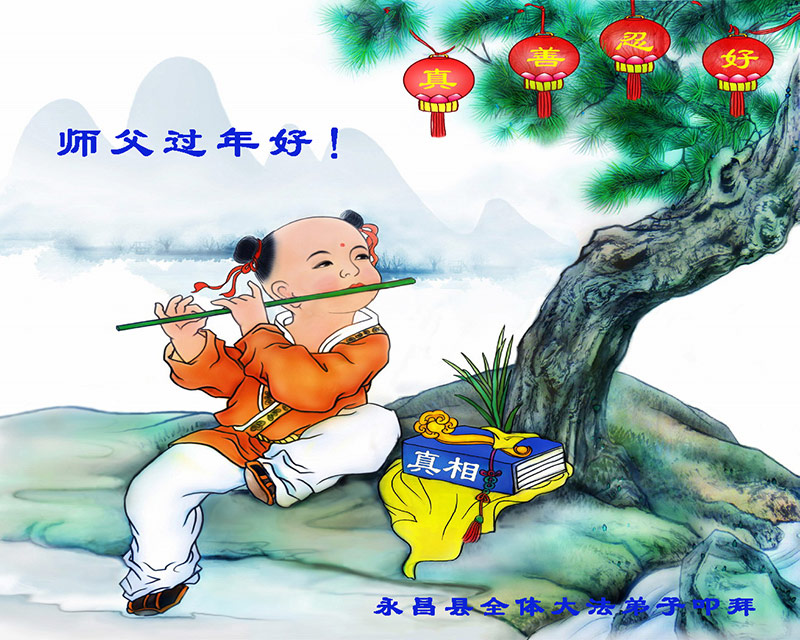 师父辛苦了。要不是师父时时看护,师父的慈悲,我走不到今天。谢谢师父! 山东省淄博市全体大法弟子恭祝慈悲伟大的师父过年好!
