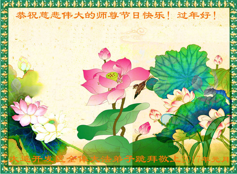 【明慧网二零一七年一月二十五日】 辽宁省大连金普新区全体大法弟子恭祝慈悲伟大的师尊过年好!师尊节日快乐!