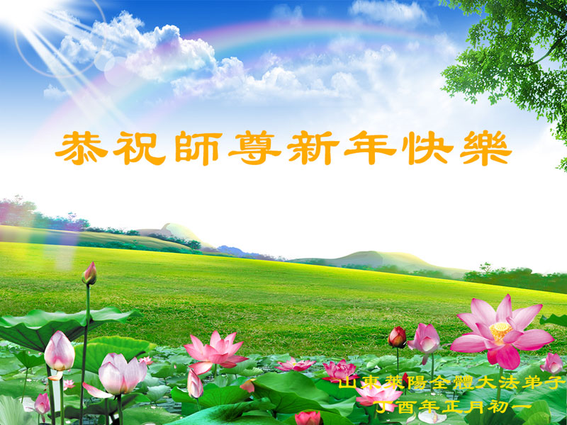 山东省烟台市莱阳市全体大法弟子恭祝师尊新年快乐!